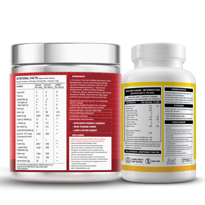 Dynamite Pre-workout (15 Servings, Fruit Blast) + YouWeFit Triple Strength Fish Oil (60 Capsules)