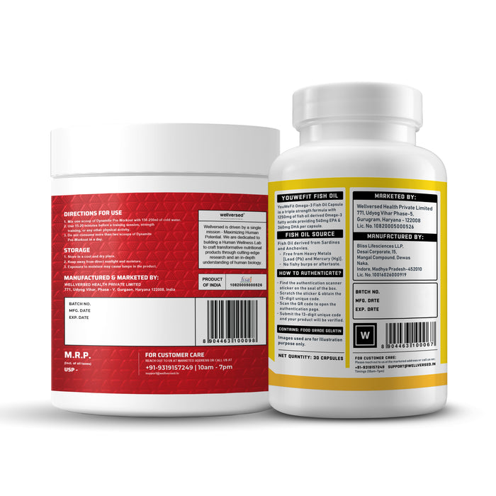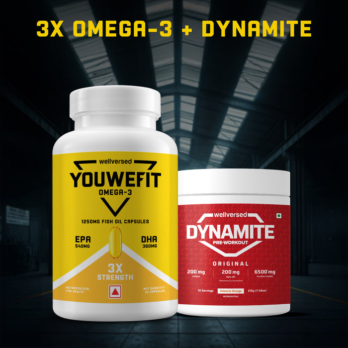 Dynamite Pre-workout (15 Servings, Valencia Orange) + YouWeFit Triple Strength Fish Oil (30 Capsules)