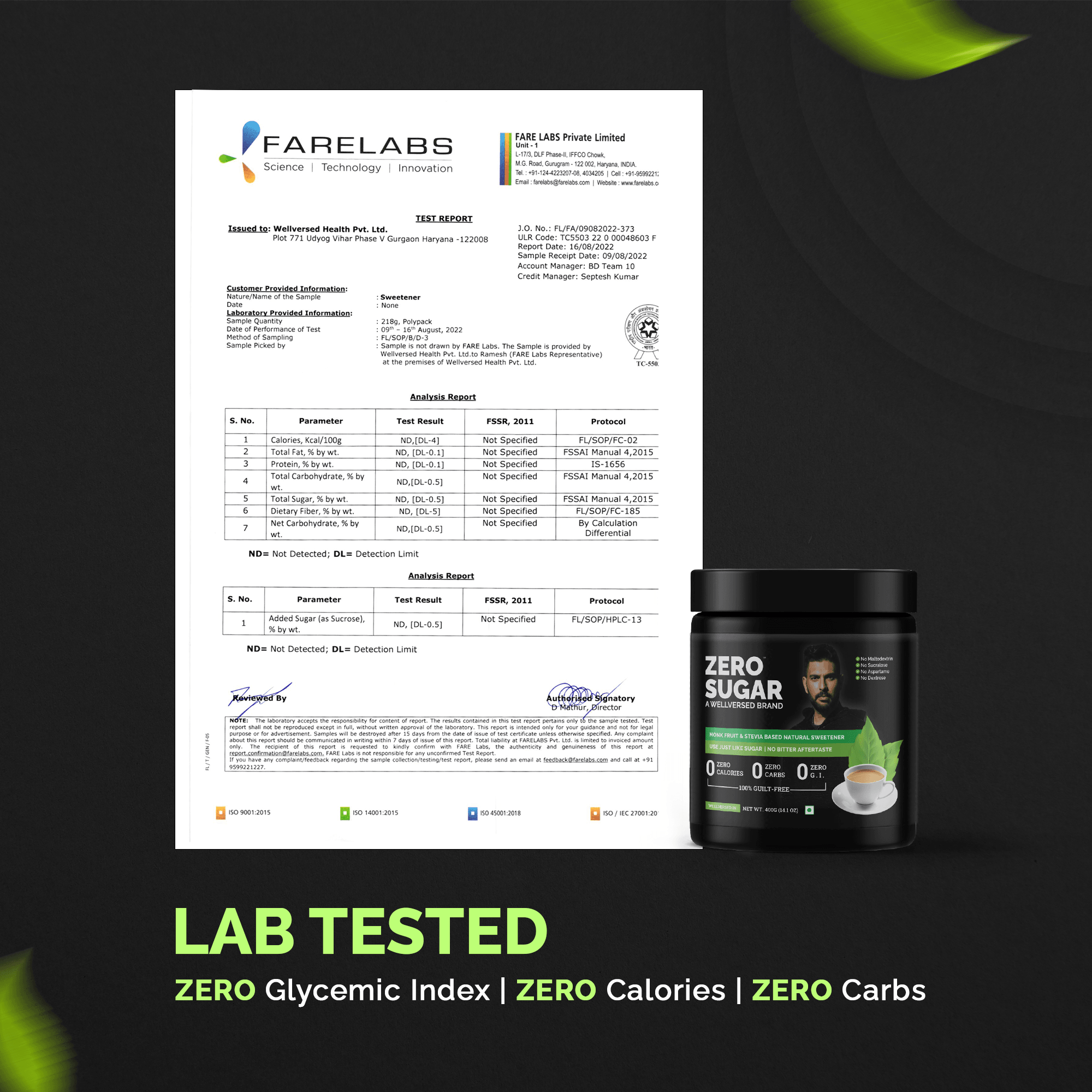 • No Empty Calories, Only Unlimited Happiness: Zero Sugar is made with zero-calorie ingredients. Also, being an ultra low-GI natural sugar substitute, it may not lead to a sudden blood sugar spike while helping manage weight.
